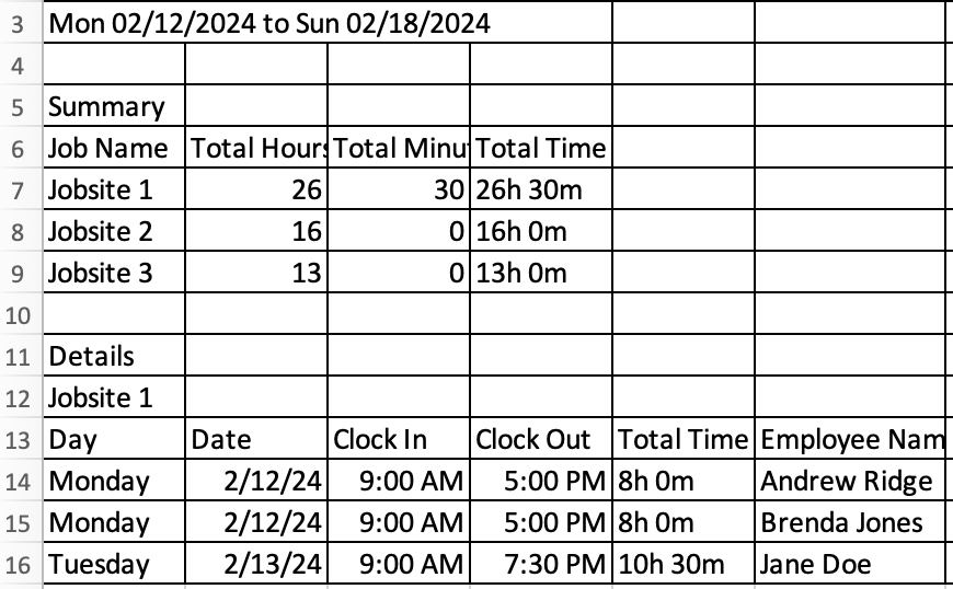 Know what each job is costing you in labor by exporting your employees' timesheets and group them by job to give you a summary of hours spent on each job.